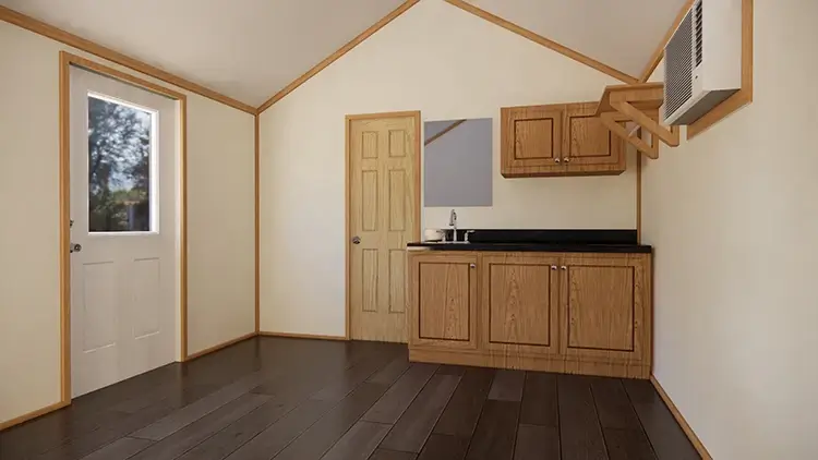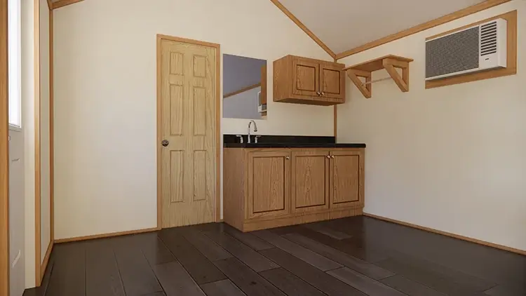 What’s the difference between a Vacavia cottage and a cabin? The only difference between Vacavia’s cottage and cabin offerings is the design motif. Our floor plans are available either as cabins or as cottages. The cottages are painted in a variety of colors that you might expect to find at the beach or in an upscale RV resort. The interiors of our cottages come standard with vinyl-covered sheetrock for a clean and modern look. The exterior of our cabins, on the other hand, are stained with natural wood color and paneled with birch paneling inside.