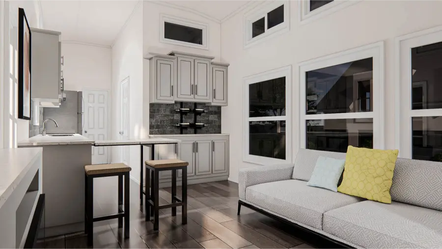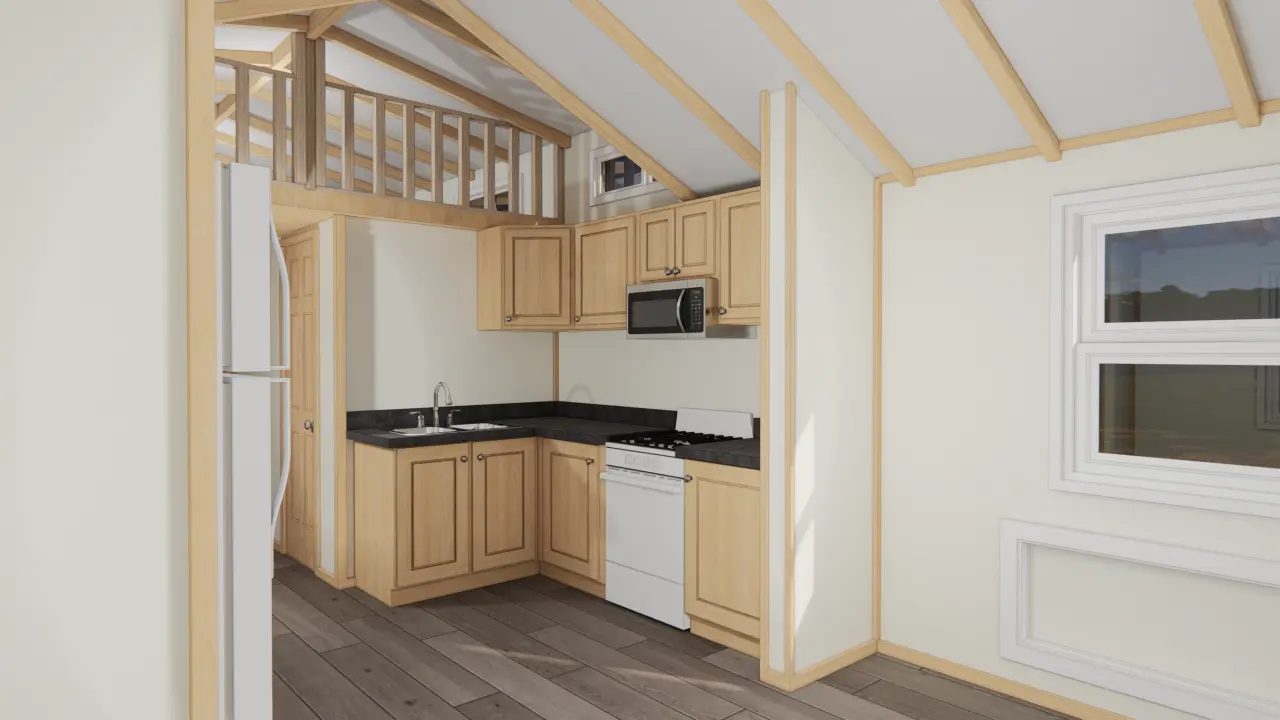 The 259.60 sqft Stone Mountain unit is a thoughtfully designed living space featuring one bedroom, a stylish bathroom, a well-appointed kitchen, and an optional loft/dormer.